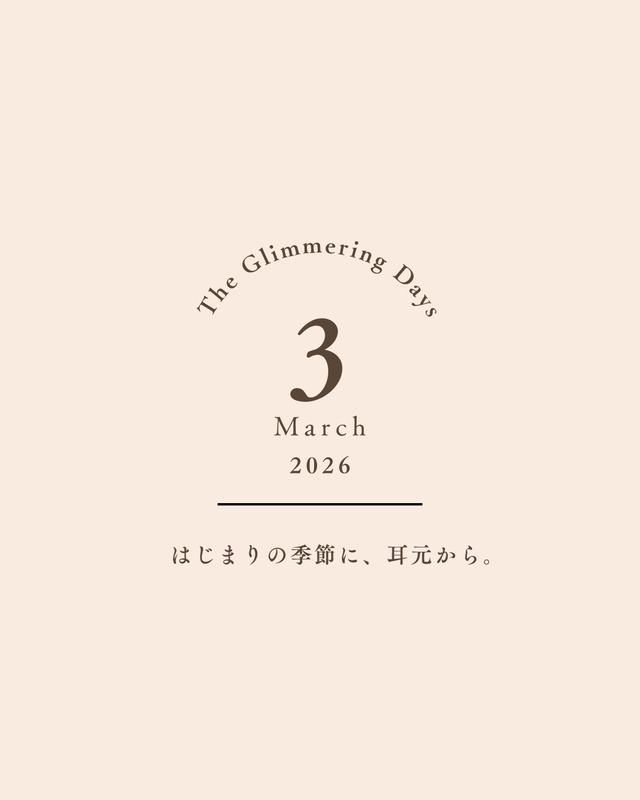 The Glimmering Days✨ はじまりの季節に、耳元から。 -March Garden 3月のお庭のスケジュールです。 動き始めていること、 静かに育てていること、 いくつかのお庭が、同時に進んでいます。 定番コレクションのお庭、 ヴィンテージ素材のお庭、 この時期ならではの光を それぞれのお庭に含ませています。 気になる日があれば、覗いてもらえたら嬉しいです。 【3月のお庭】 定番コレクションWeb販売会 ・ 2/12-14(THU-SAT) ヴィンテージコレクションWeb販売会 • 2/24-26(TUE-THU)