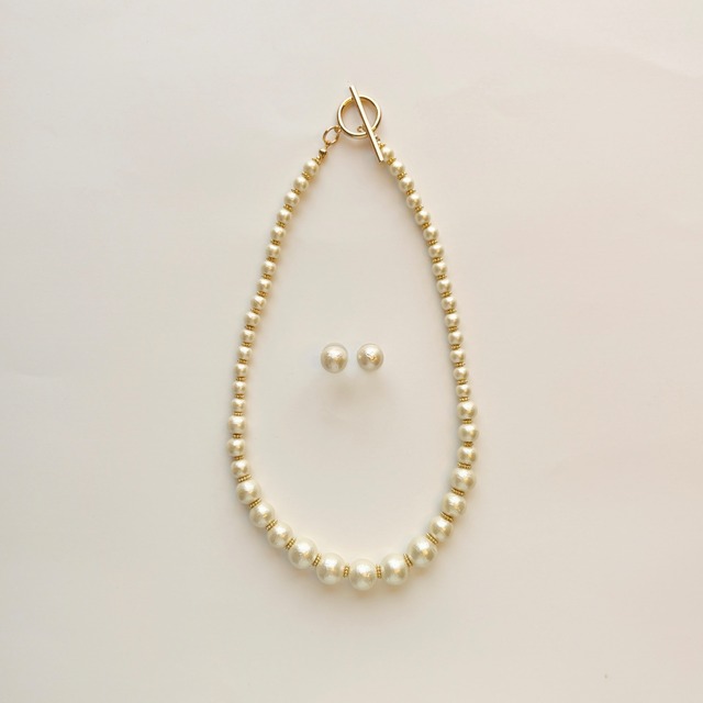 Cotton Pearl Parure (ネックレス&耳飾り)・グラデーション