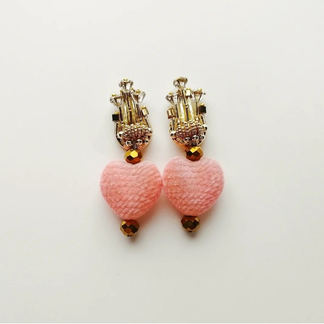 Velvet Corazón マリアの心臓をモチーフにしたリニューアル耳飾り。 死者の日の祭壇に捧げるマリーゴールドの花々のように、 それぞれの色に祈りと物語を宿しています。 Marigold・陽だまりのようにあたたかく、花々の祝祭を象徴する心。 ブルガリアより仕入れたボヘミアンガラスビーズと 日本製ガラスビーズを組み合わせ、 深い色彩と光を重ね合わせた仕立て。 色ごとに異なる表情を持ちながらも、 心の奥で静かに燃えるような輝きを耳元に添えてくれます。 --------------------------------------- Velvet Corazon 素材:アクリルビーズ/日本製ガラスビーズ/デッドストックパーツ/日本製合金 タイプ:バネ式イヤリング/樹脂埋め込みソフトネジバネ式イヤリング 長さ:6,5cm