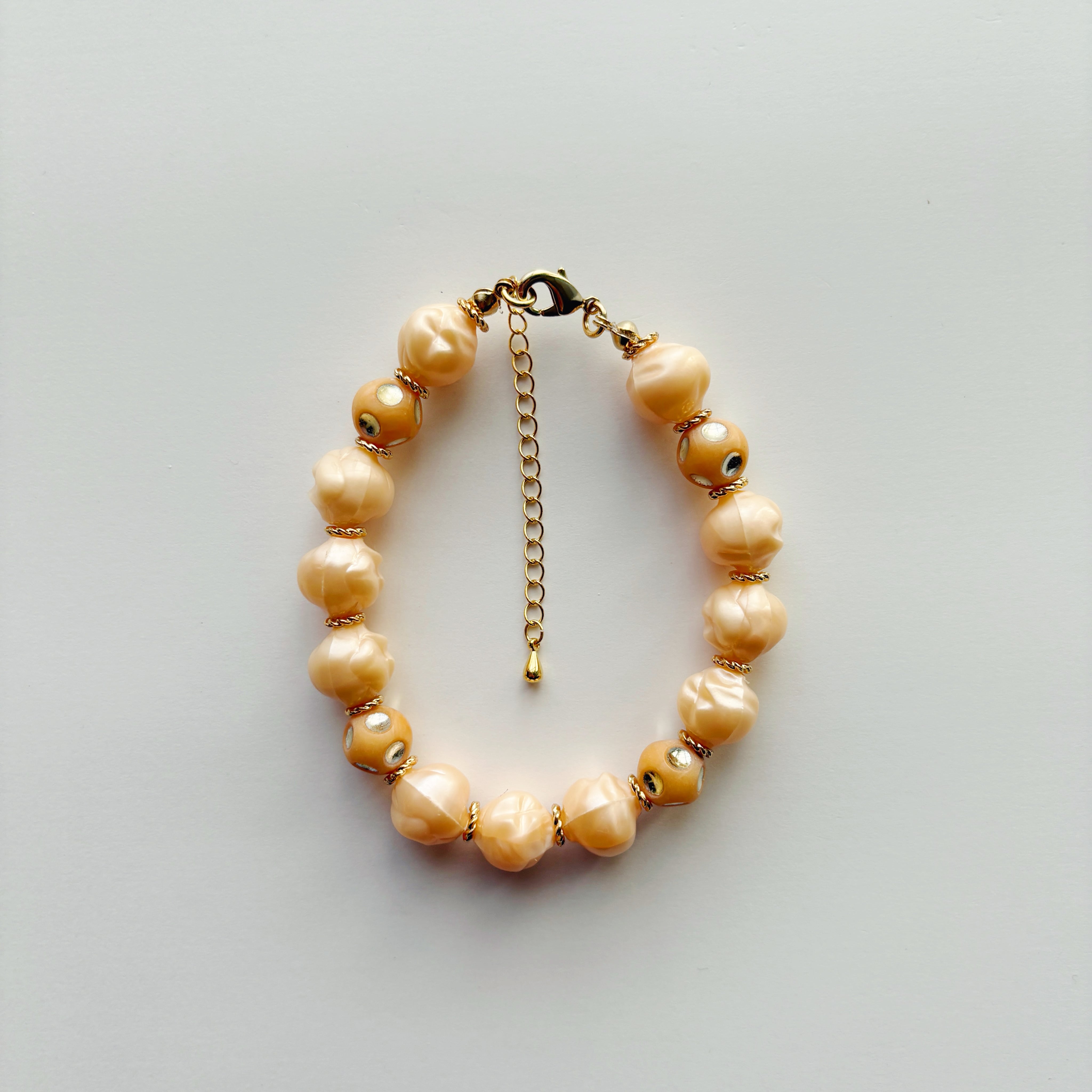 ピーチアプリコットのヴィンテージビーズを連ねた