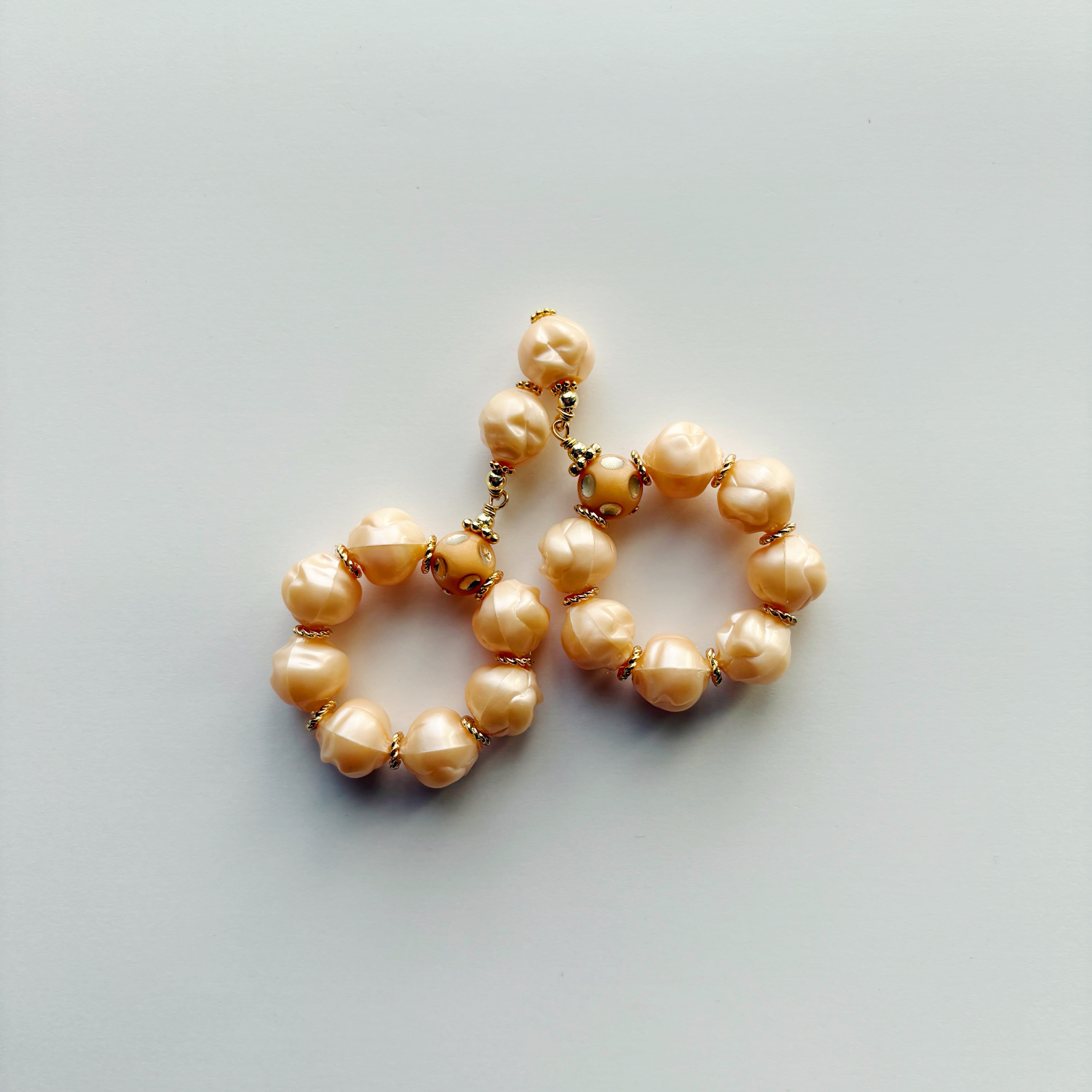ピーチアプリコットのヴィンテージビーズを連ねた
