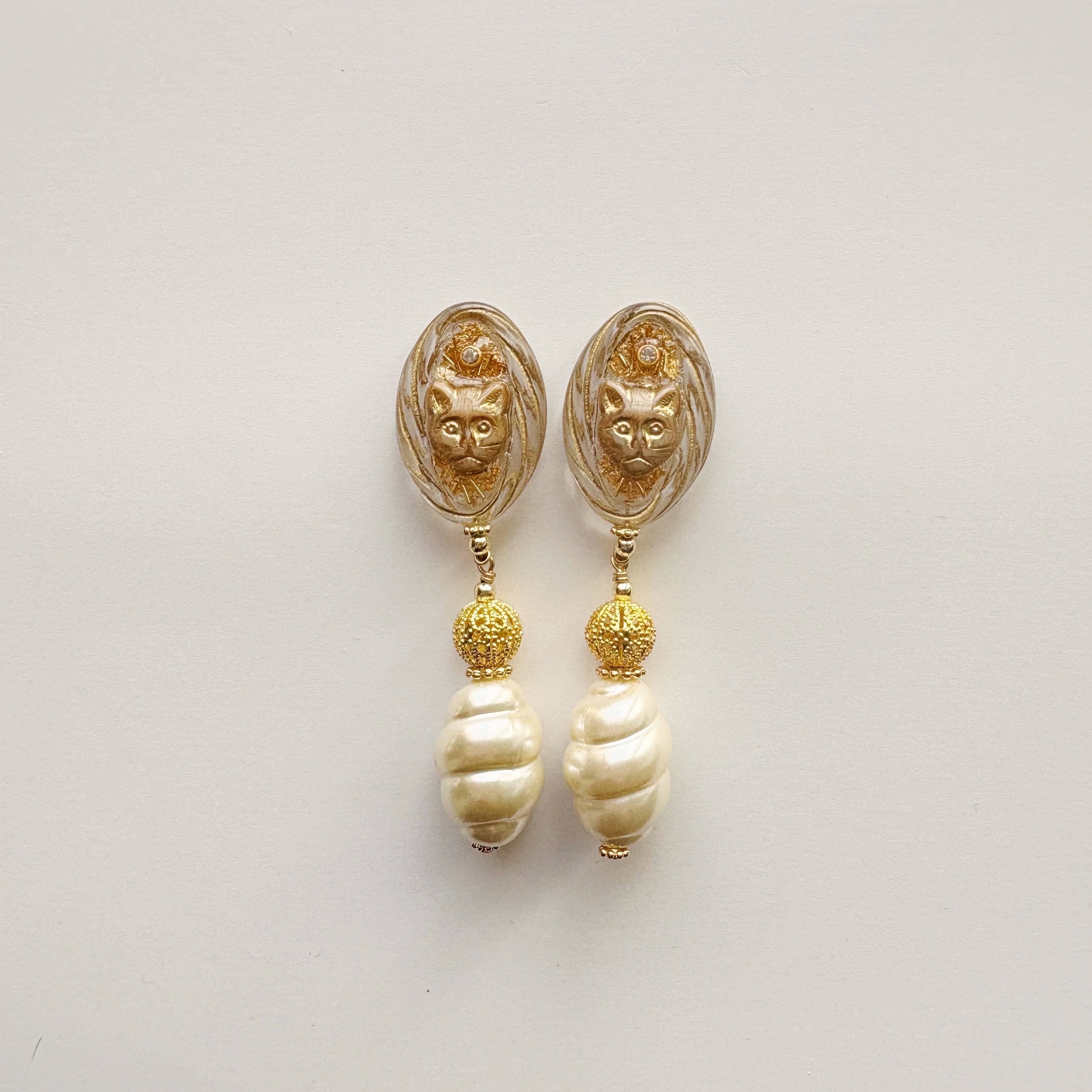 イミテーションパールを重ねた耳飾りです。