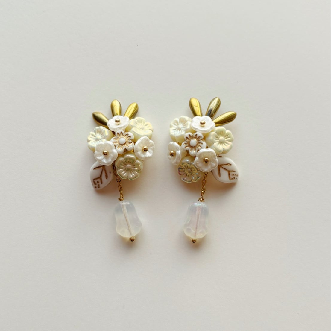 素材:ボヘミアンガラスビーズ(US)、テグス、合金