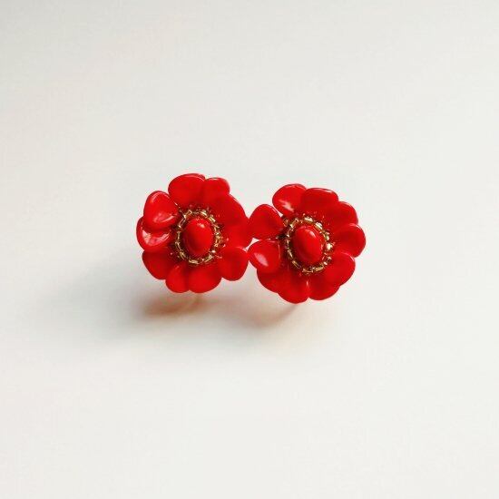 人気No.2のお花の耳飾りをエネルギッシュなカラーで。