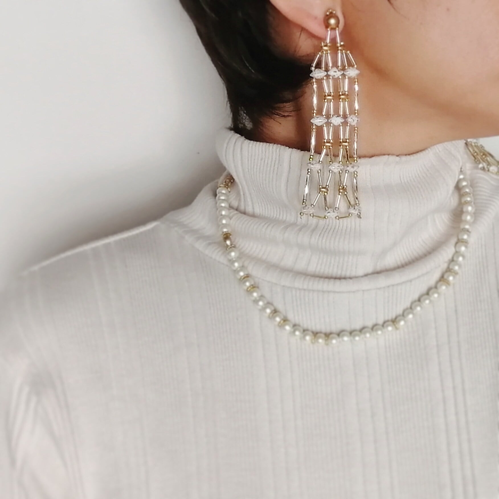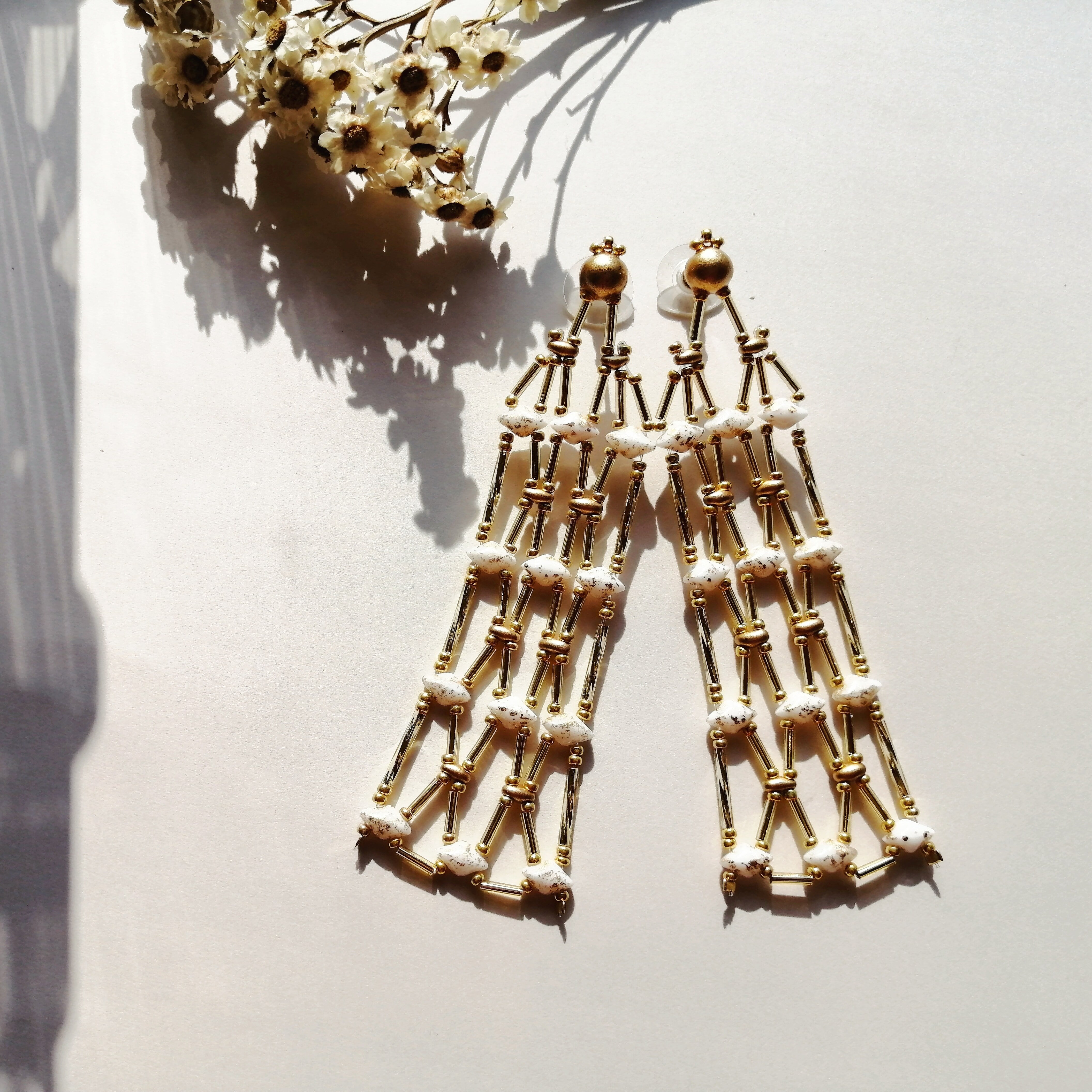 素材:ボヘミアンガラスビーズ/日本製ガラスビーズ/合金/テグス
