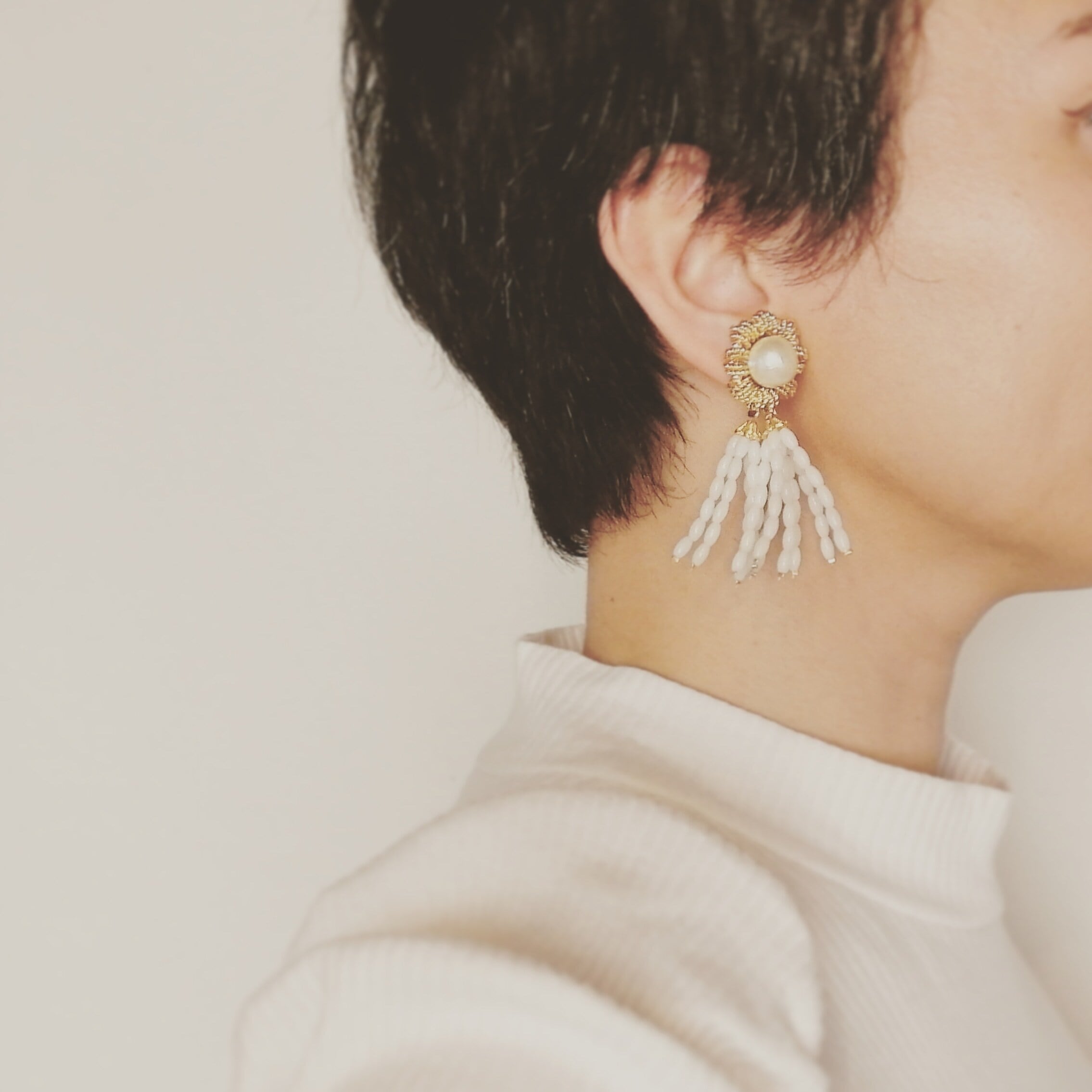 フリンジのように動く耳飾りに仕立てました。